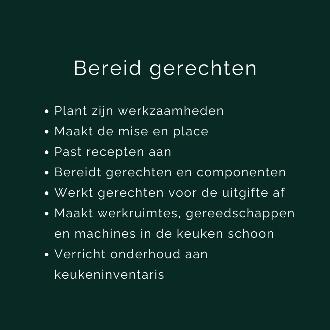 Je leert hoe je gerechten moet bereiden volgens recept op basis van planning.