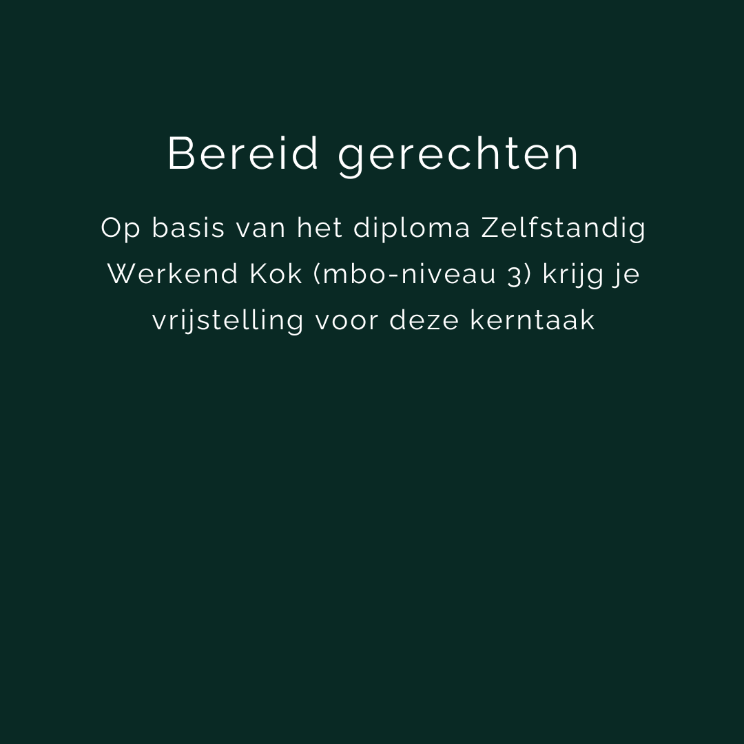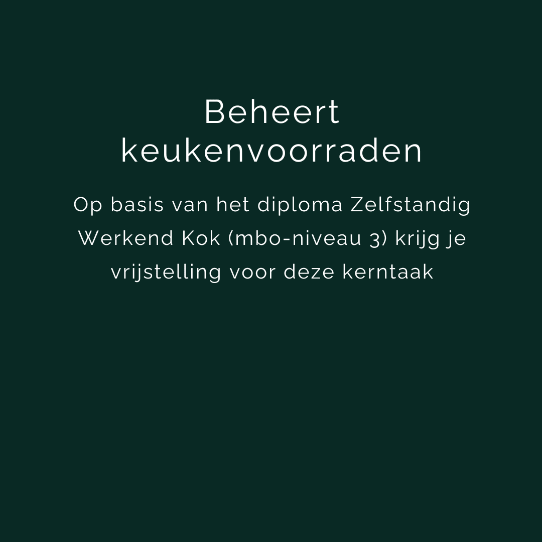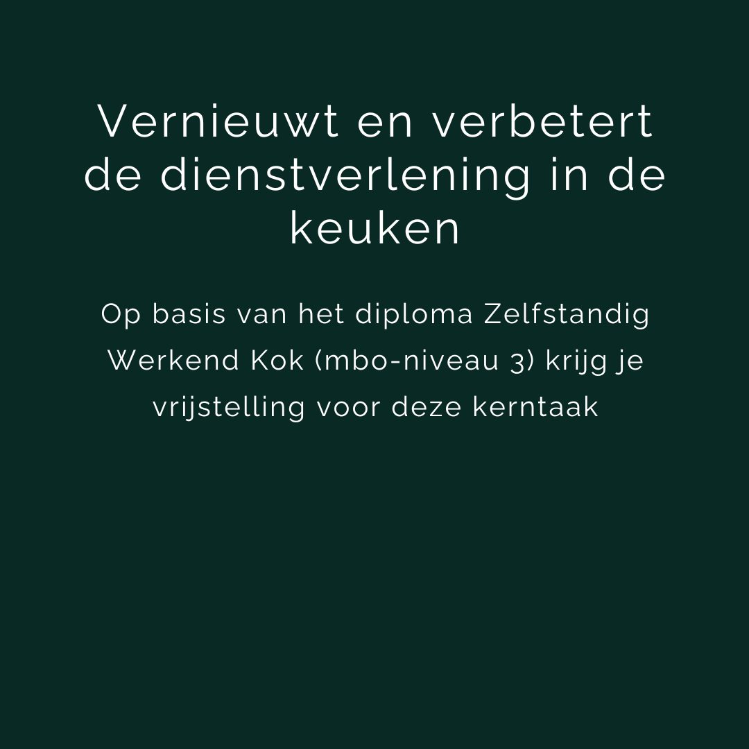 *Let op! Heb je dit diploma nog niet? Meld je dan eerst aan voor de SVH-branche opleiding Zelfstandig werkend kok niveau 3. Na één jaar behaal je het diploma en kun je alsnog doorstromen naar de opleiding Leidinggevende keuken niveau 4.